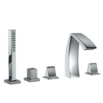 5-Loch Wannenmischer mit herausziehbarer Handbrause in Chrom.