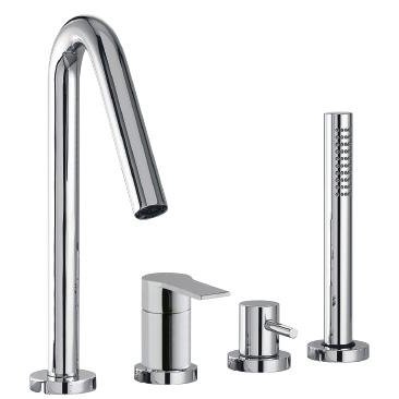 4-Loch-Wannenrandbatterie mit ausziehbarer Chrom-Handbrause.
