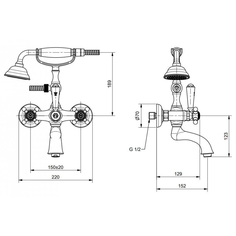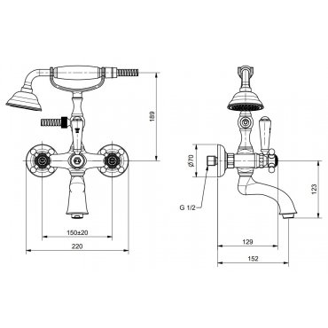 Externe Wannengruppe mit zwei Griffen, komplett mit Umsteller