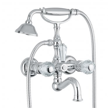 wandbatterie klassisch bad retro zwei griffe kristall umsteller flexible handbrause 8300k griff kristall