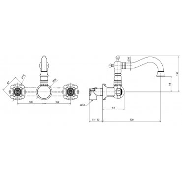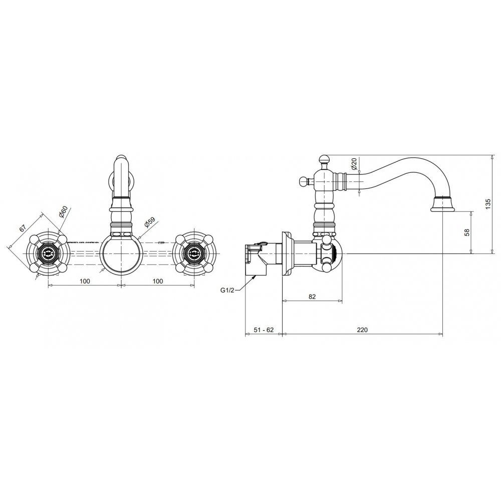 BUGNATESE ARCADIA WANDMONTIERTE WASCHTISCHBATTERIE MIT SCHWENKBAREM AUSLAUF VERC