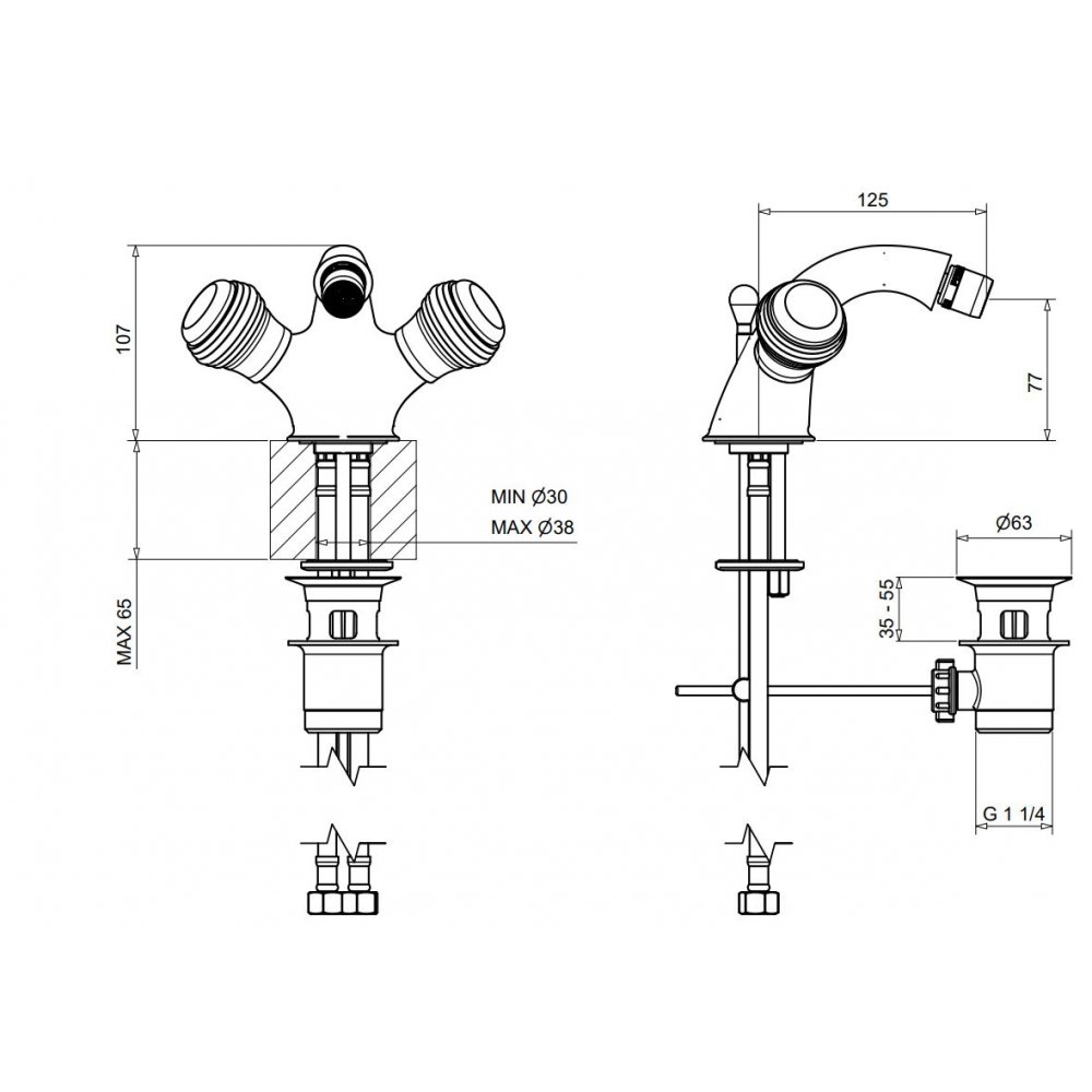 BUGNATESE AXO EINLOCH BIDET MIT VERCHROMTEM AUSLAUF