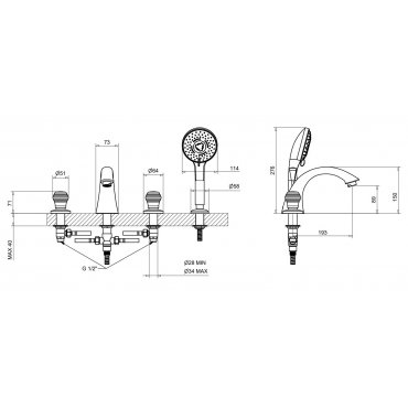 • TREEMME RAN BATTERIE AUF BADEWANNE MIT 4 LÖCHERN MIT ABNEHMBARE DUSCHE CHROM
