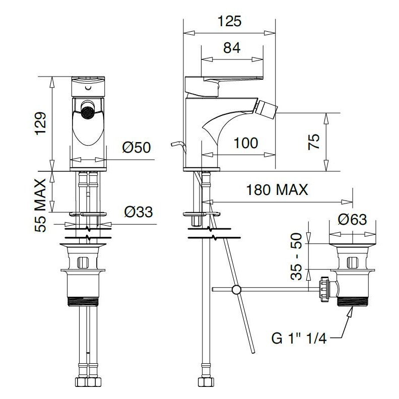 BUGNATESE CENTURY BIDETMISCHER MIT ABLAUFGARNITUR AUS CHROM