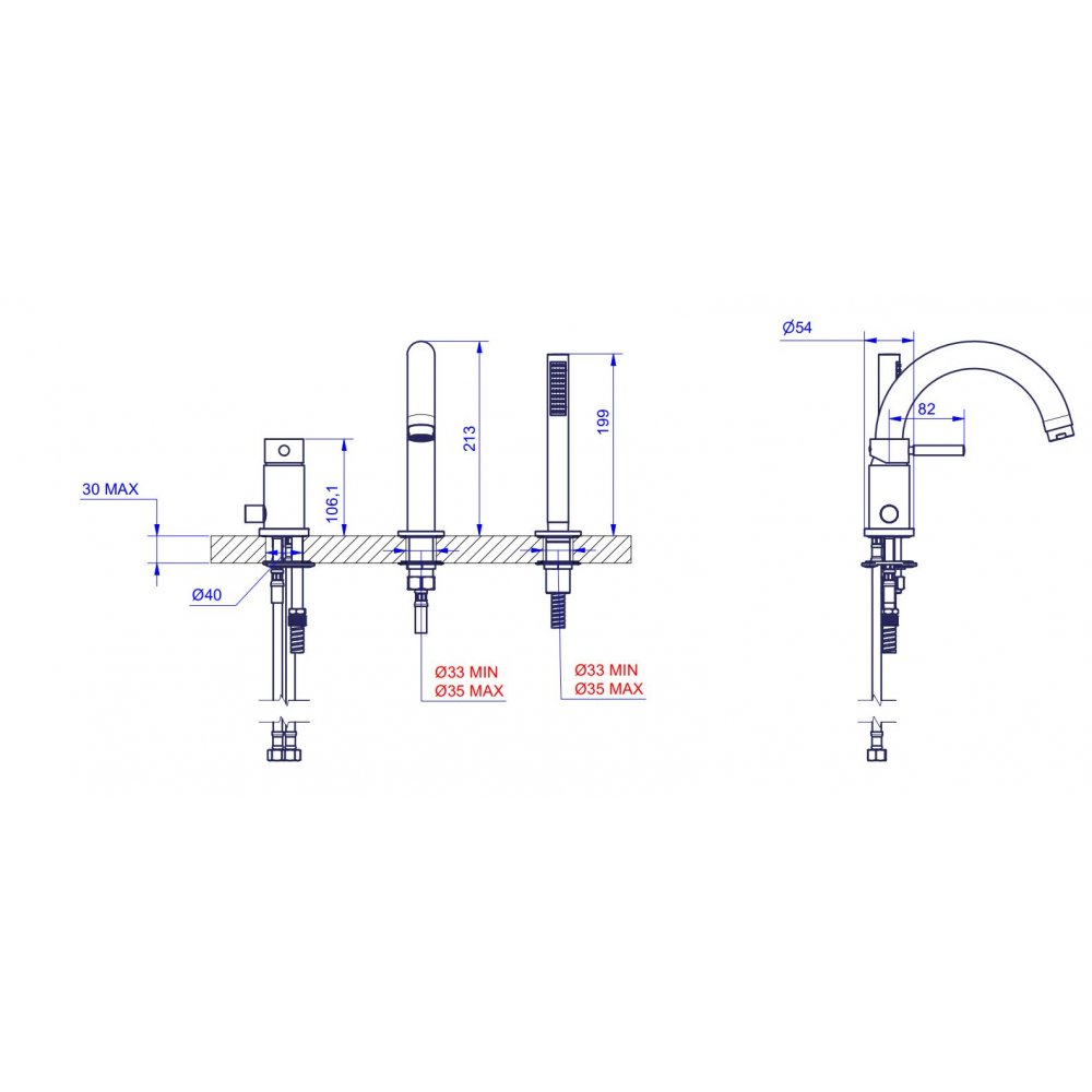 QUADRO DESIGN OTTAVO 3-LOCH-BADEWANNENRANDBATTERIE MIT BRAUSEGARNITUR