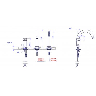 • GABOLI FRATELLI GRILLO BADEWANNENRANDMISCHER 4 LOCH MIT AUSGUSS UND KIT DUSCHE