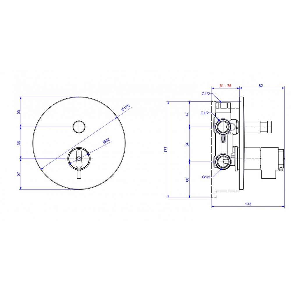 BUGNATESE KOBUK THERMOSTATISCHE 2-WEGE-WANNENBATTERIE VERCHROMT​ 2278