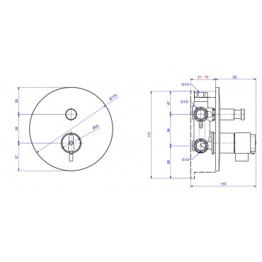 BUGNATESE KOBUK THERMOSTATISCHE 2-WEGE-WANNENBATTERIE VERCHROMT