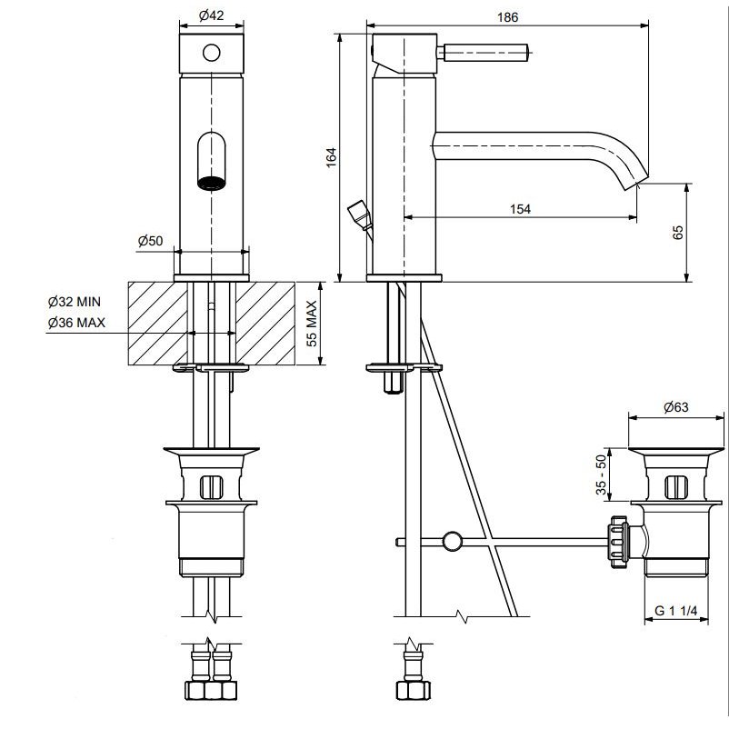 BUGNATESE KOBUK FIX WASCHTISCHBATTERIE MIT ABLAUFGARNITUR 15,5 CM CHROM AUSLAUF