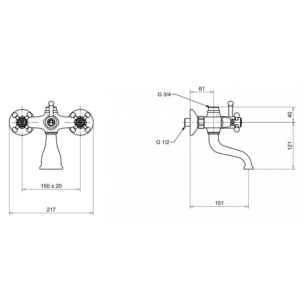BUGNATESE LADY EXTERNE BADEWANNENGRUPPE MIT 3/4 CHROM ANSCHLUSS