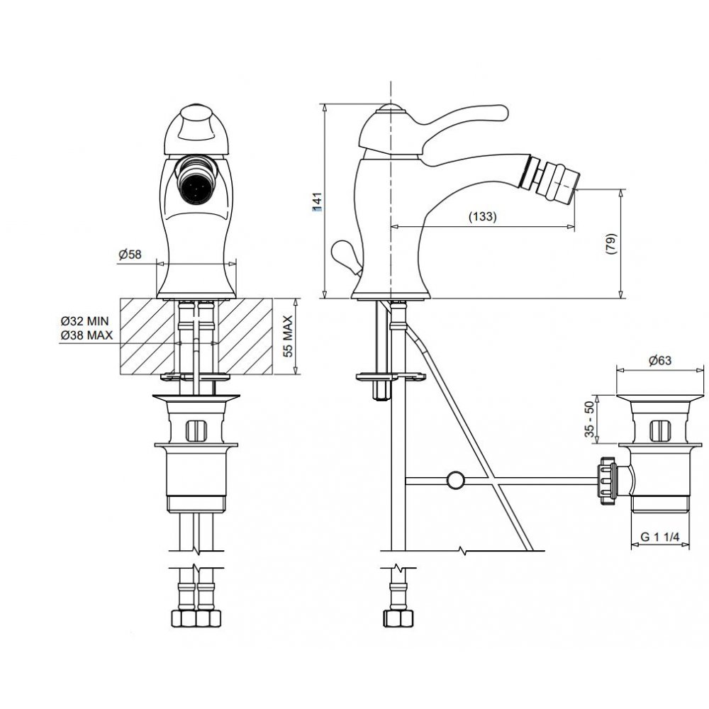 BUGNATESE LEM BIDET MISCHBATTERIE MIT ABLAUFGARNITUR CHROM