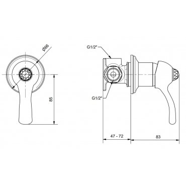 BUGNATESE OLD 800 ABSPERRHAHN FÜR UNTERPUTZMONTAGE 1/2 CHROM