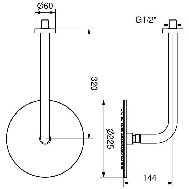 BUGNATESE SIMPLE STAHL-DUSCHARM MIT RUNDEM DUSCHKOPF INSPIZIERBAR