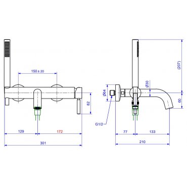 BUGNATESE KOBUK GERADE WANNENBATTERIE MIT CHROM-DUPLEX
