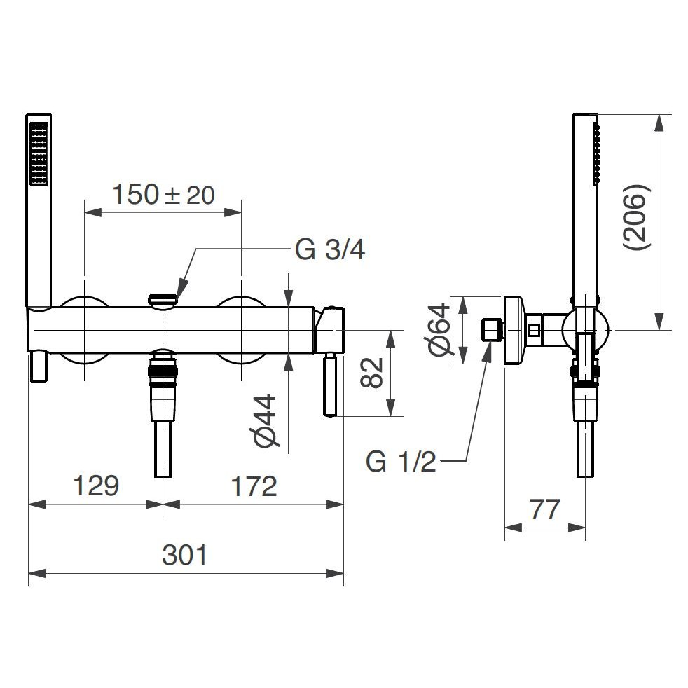 BUGNATESE KOBUK EXTERNE GERADE BRAUSEBATTERIE MIT 3/4" CHROMANSCHLUSS