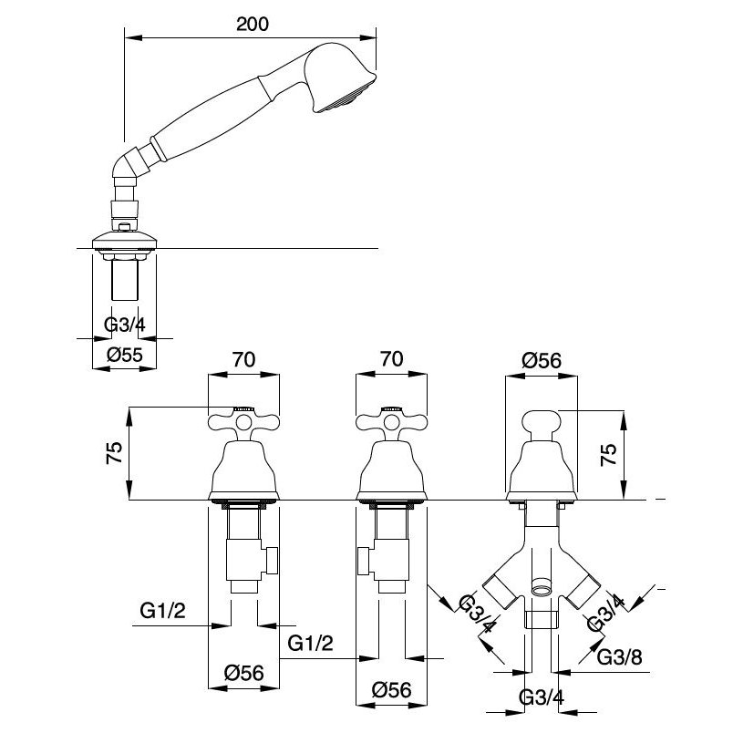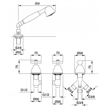 BUGNATESE OLD 800 BADEWANNENRANDARMATUR OHNE AUSLAUF VERCHROMT