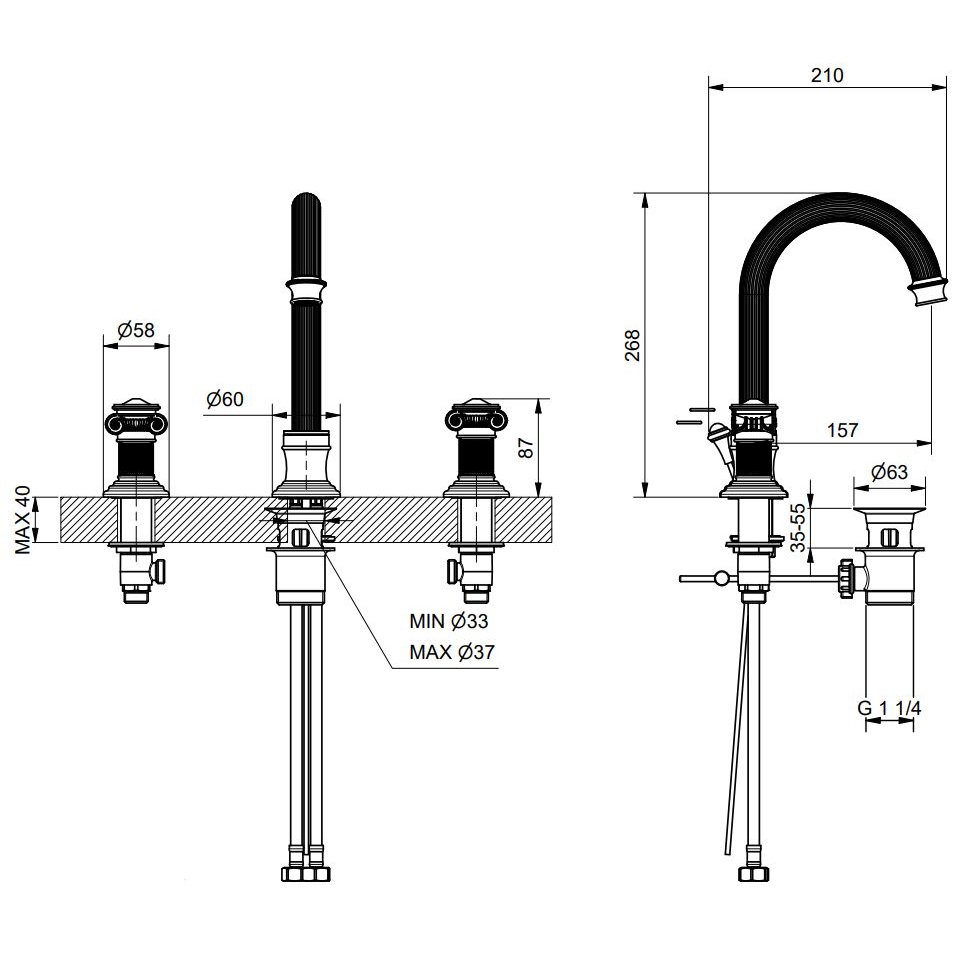 BUGNATESE OLYMPIA WASCHTISCHBATTERIE MIT ABLAUFGARNITUR MIT GRIFF KRISTAL CHROM