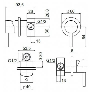 BUGNATESE KIRVY STAHL EINBAUBRAUSEBATTERIE MIT EDELSTAHLPLATTE