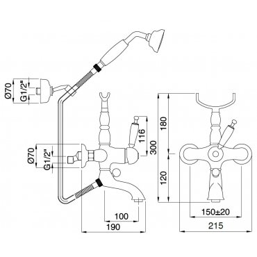Einhebel-Wannenbatterie classic Wannenbatterie für Aufputz-Armatur flexible Halterung 6302