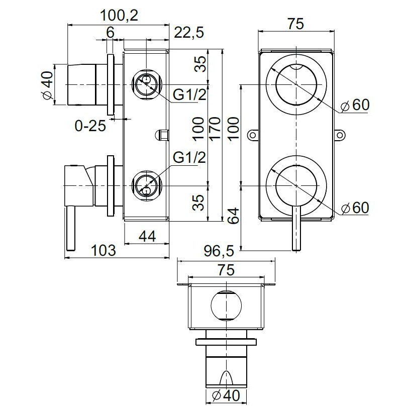 QUADRO DESIGN SOURCE UNTERPUTZ-ZWEIWEGE-MISCHER UND -UMLENKEINHEIT