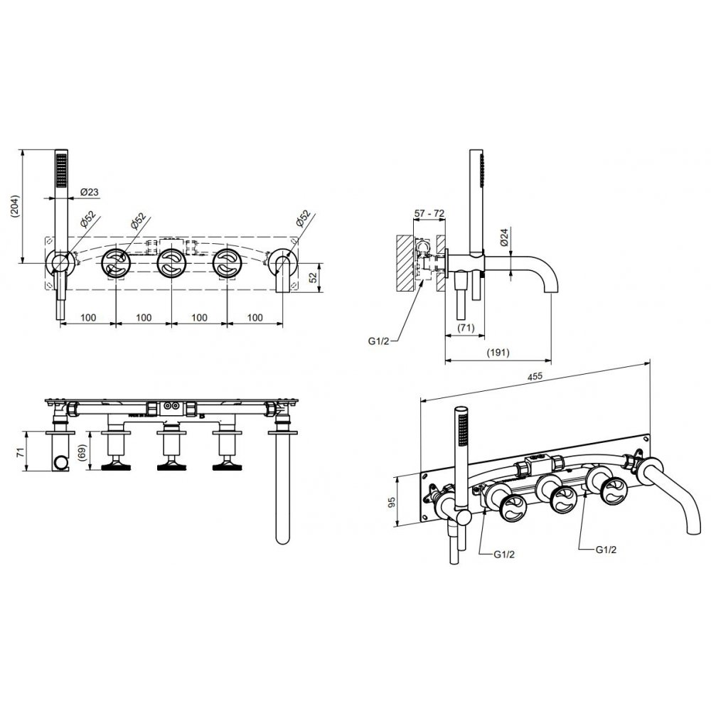 BUGNATESE MILLENOVECINQUANTA EINBAUBADEWANNENGRUPPE MIT AUSLAUF UND DUPLEX