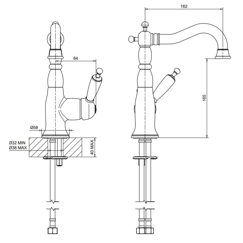 Einhebel-Waschtischmischer modern Blindkopf ohne Ablaufgarnitur chrom mit flexiblen Schläuchen 6313S