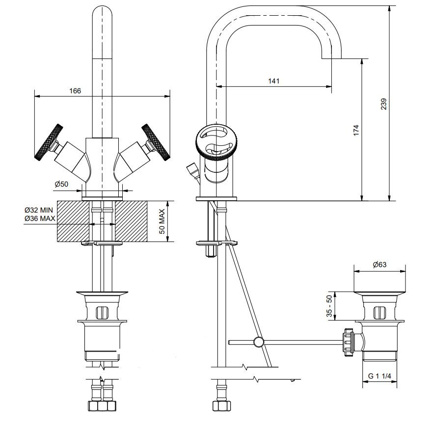BUGNATESE MILLENOVECINQUANTA EINLOCH-WASCHTISCHMISCHER MIT ABLAUFGARNITUR