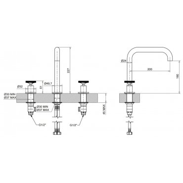 QUADRO DESIGN VALVOLA01 3-LOCH-WASCHTISCHBATTERIE MIT SCHWENKBAREM AUSLAUF