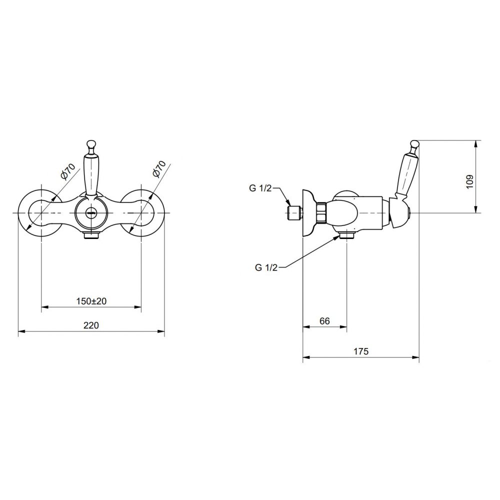 BUGNATESE OXFORD AUFPUTZ-BRAUSEBATTERIE OHNE DUPLEX VERCHROMT