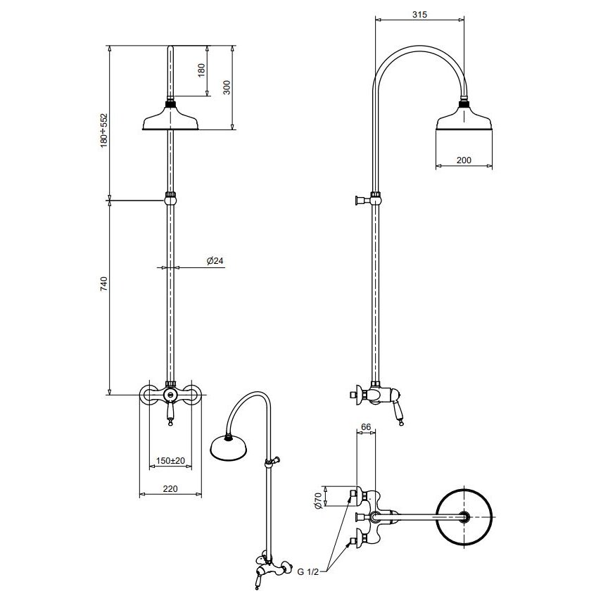 BUGNATESE OXFORD AUFPUTZ-BRAUSEBATTERIE MIT CHROM-DUSCHSÄULE UND HANDBRAUSE