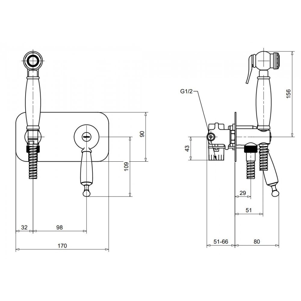 BUGNATESE OXFORD WANDMONTIERTE BIDET-BATTERIE MIT DUSCHHALTERUNG AUS CHROM
