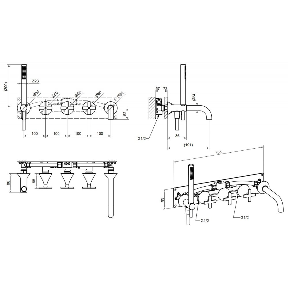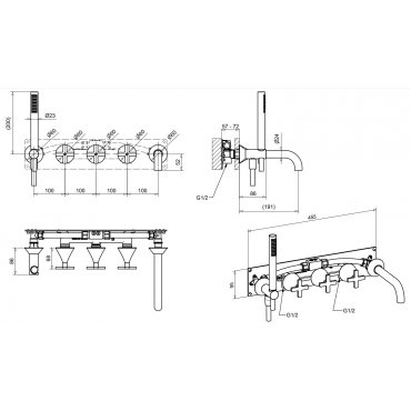 BUGNATESE ORION EINBAUBADEWANNENGRUPPE MIT AUSLAUF UND VERCHROMTEM DUPLEX KIT