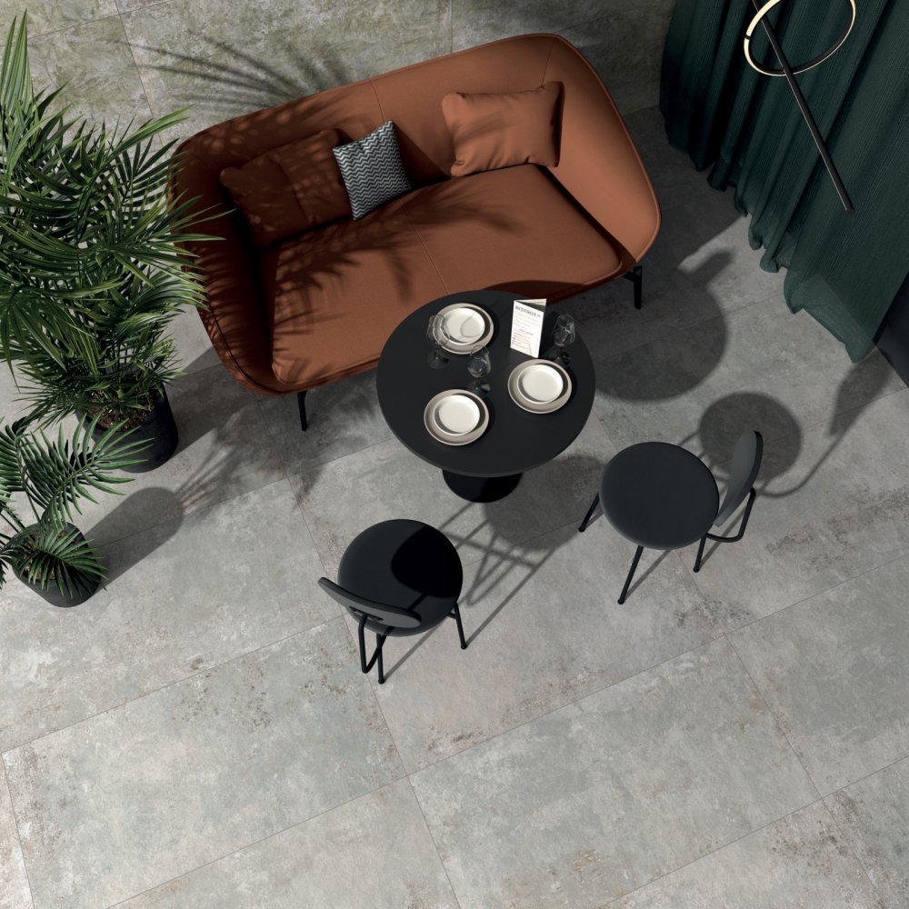 Die Ghost-Kollektion ist ein Porzellan-Steinzeug mit Stuckeffekt,