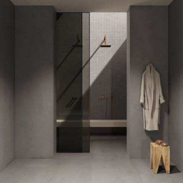Crossroad Chalk, eine Steinzeugkollektion aus Porzellan mit minimalistischem Design von ABK, zeichnet sich durch eine dreidimensionale Oberfläche aus.
