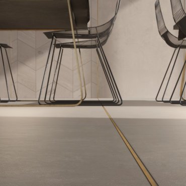 Crossroad Chalk, eine Steinzeugkollektion aus Porzellan mit minimalistischem Design von ABK, zeichnet sich durch eine dreidimensionale Oberfläche aus.