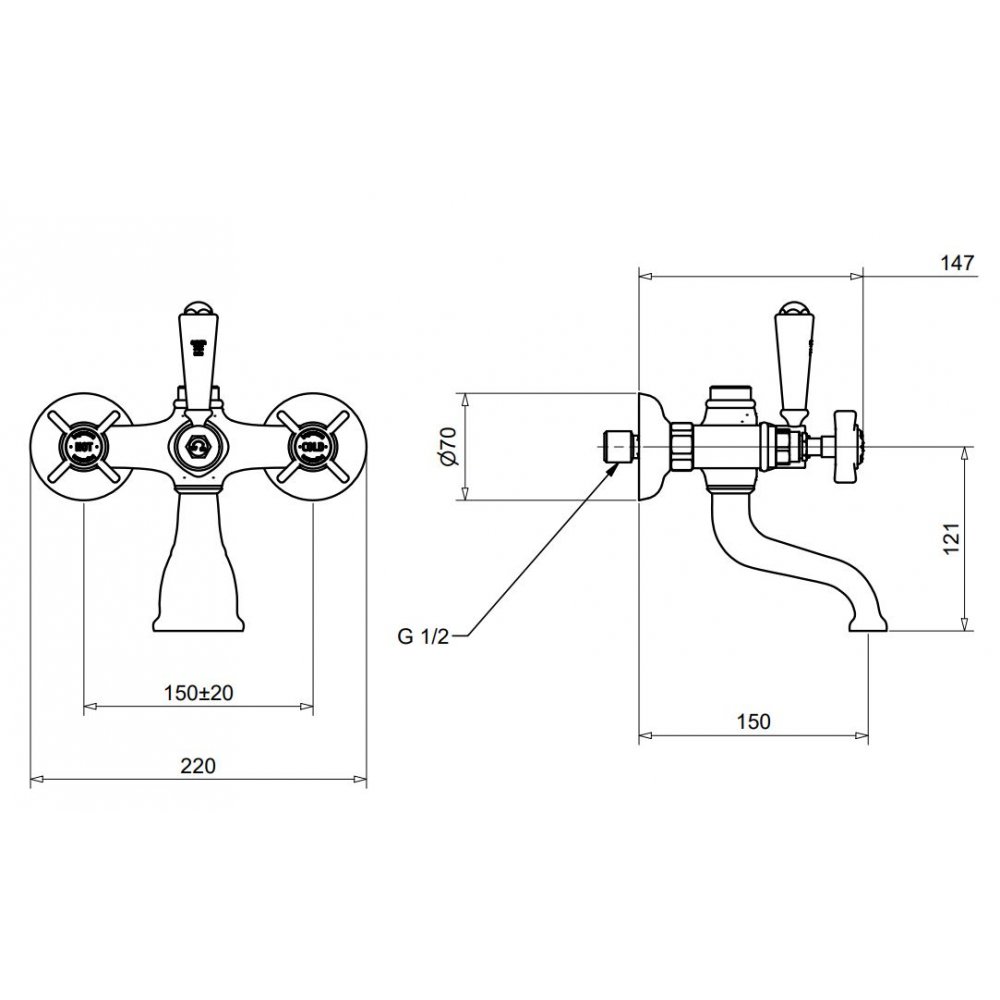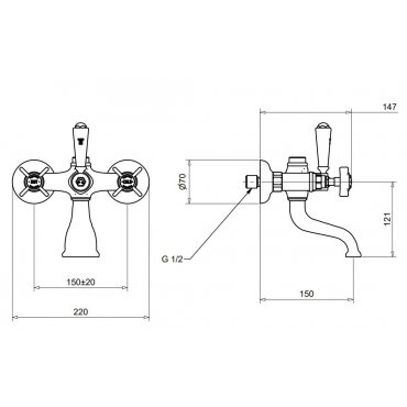 BUGNATESE PRINCETON BADEWANNENGRUPPE MIT 3/4" ANSCHLUSS UND VERCHROMTEM HEBEL
