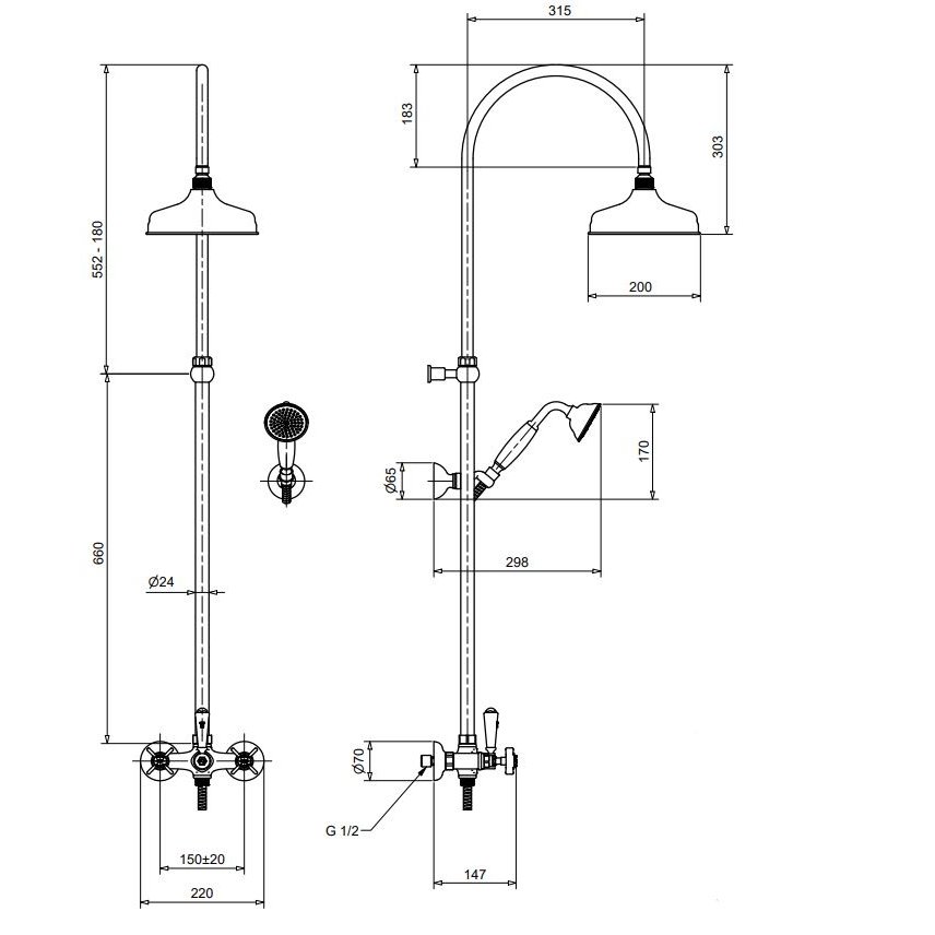 BUGNATESE PRINCETON EXTERN 3/4 MIT SÄULE UND VERCHROMTEM DUSCHKOPF