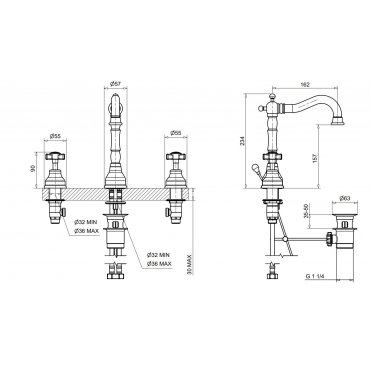 812 Wasserhähne Bad Waschtisch Waschbecken classic klassisch Waschtischmischer Mischer 3 Loch