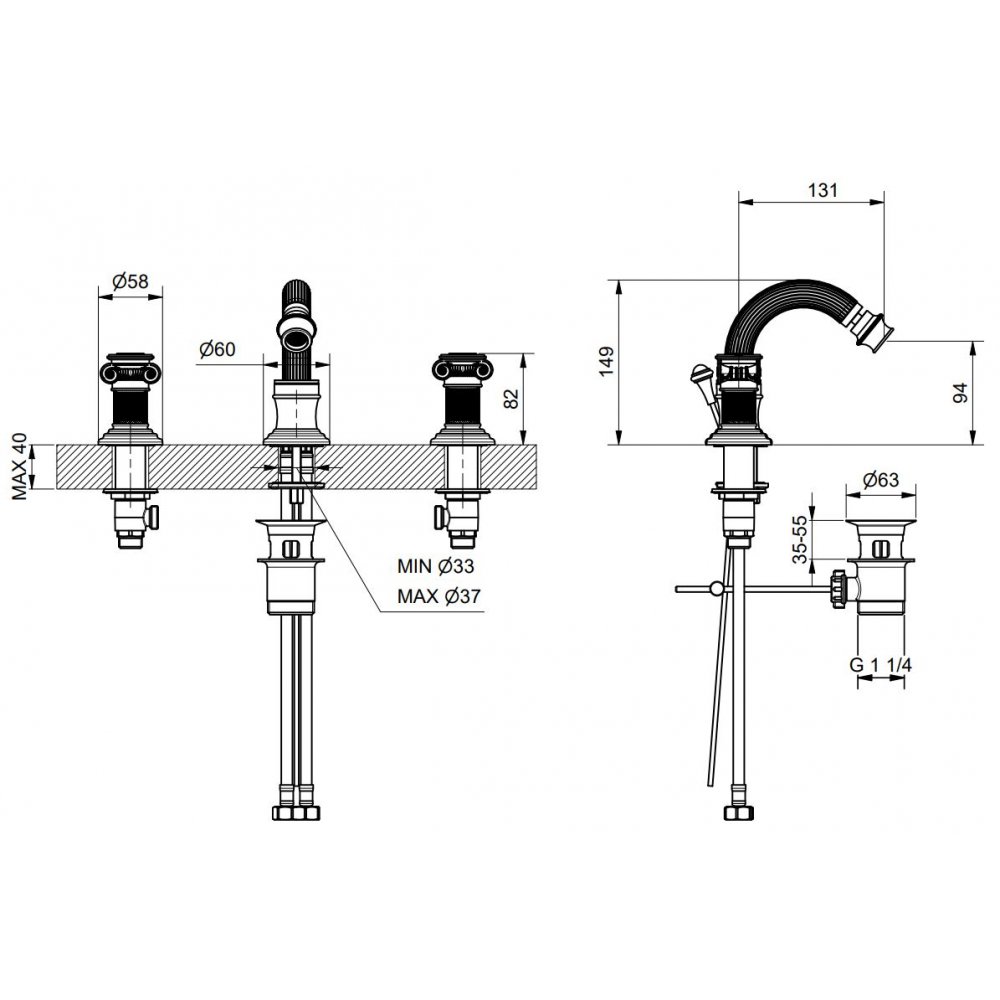 BUGNATESE OLYMPIA BIDETBATTERIE MIT AUSLAUF UND VERCHROMTEM KRISTAL-AUSLAUF