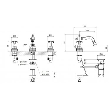 BUGNATESE PRINCETON BIDET BATTERIE MIT VERCHROMTEM AUSLAUF UND ABLAUFGARNITUR