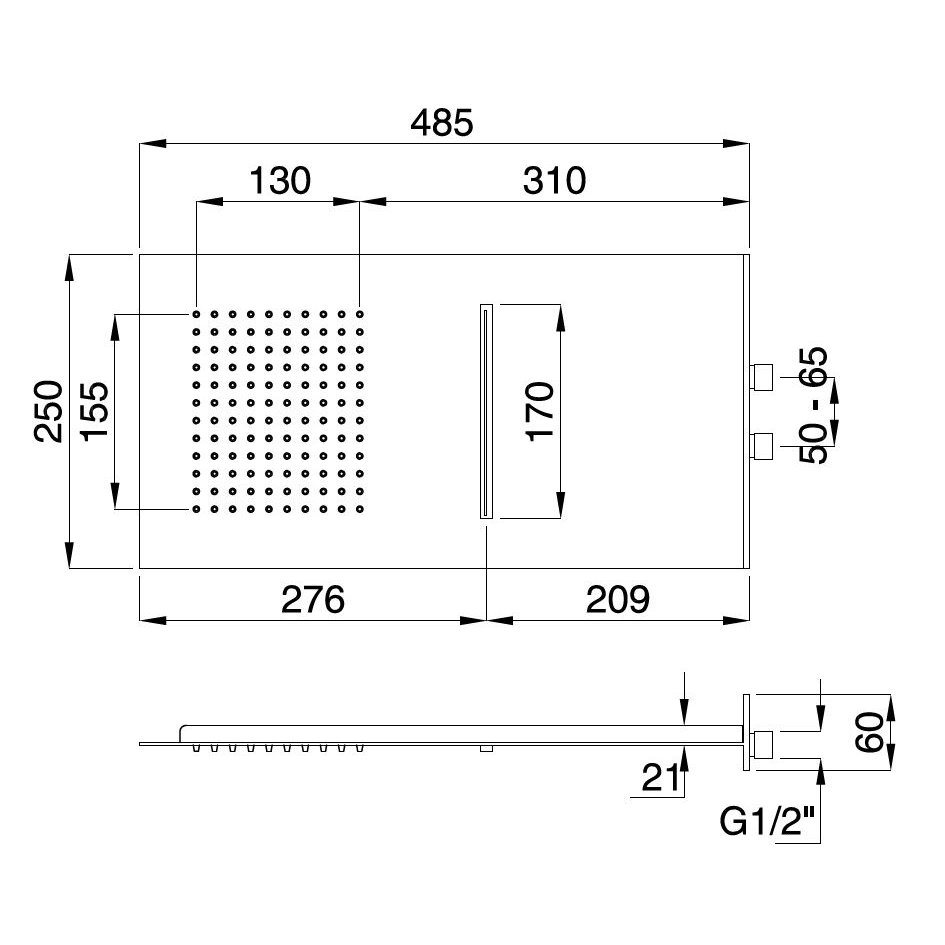 BUGNATESE WELLNESS-KOPFBRAUSE 2 STRAHLEN WASSERFALL UND REGEN CHROM