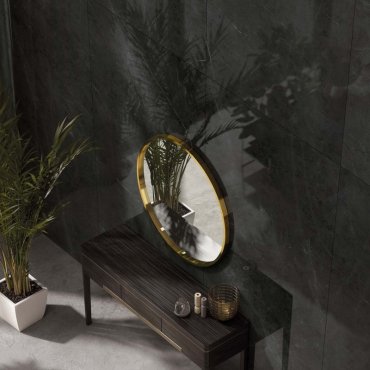 Sensi Wide, ABKs Porzellan-Steinzeugkollektion, die die glatte Oberfläche von Marmor reproduziert, erstellt eine große Serie großformatiger Platten ab 160x320 cm.