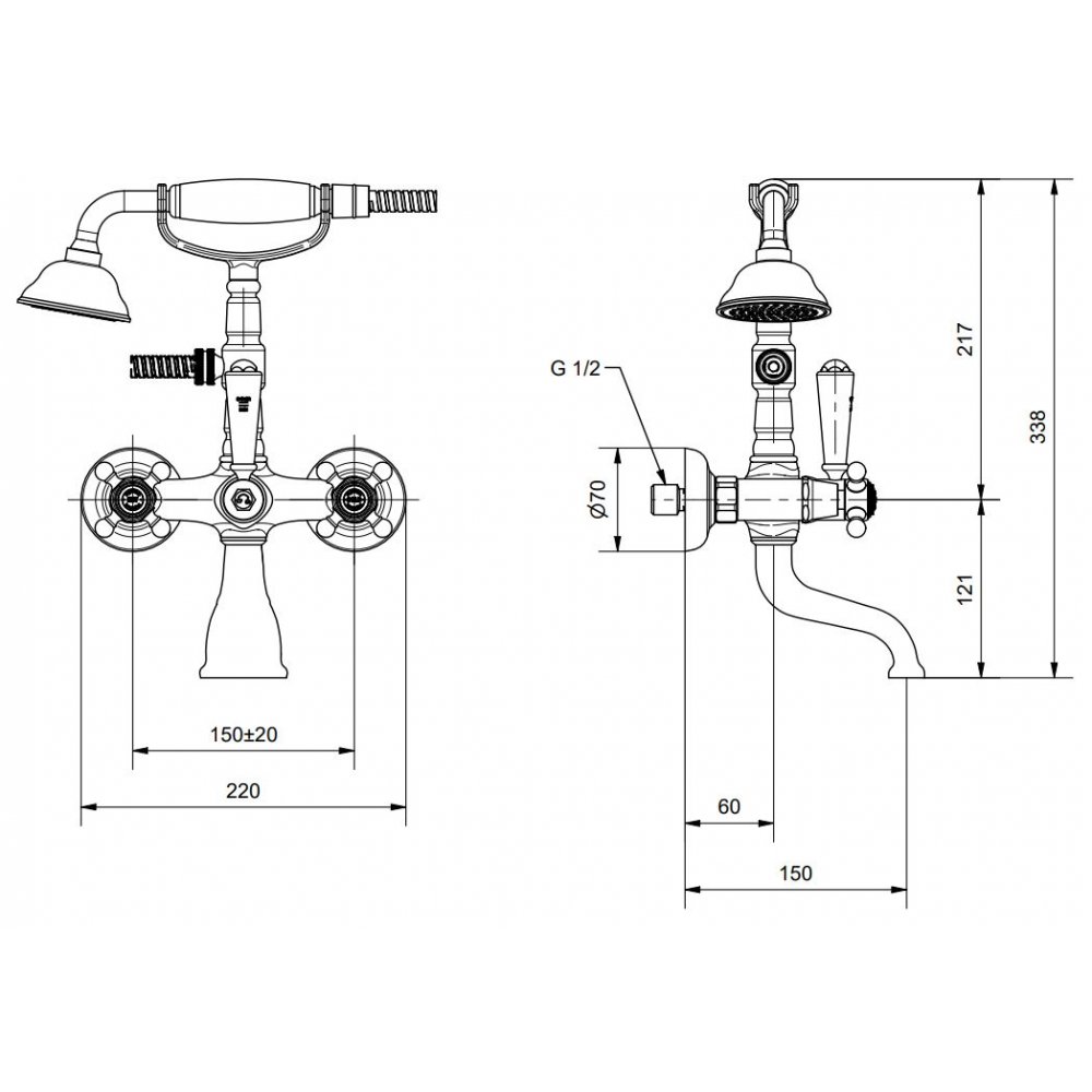BUGNATESE REVIVAL AUSSENBADEWANNENGRUPPE MIT NORMALER CHROMDUSCHE
