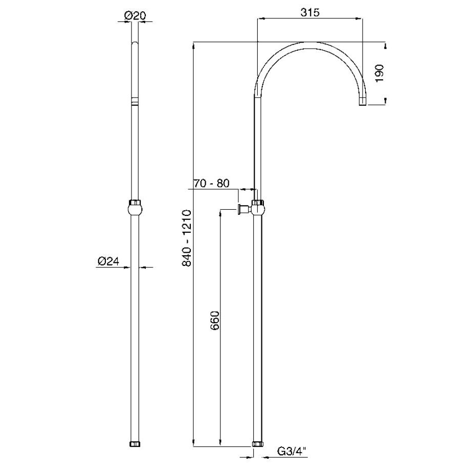 BUGNATESE WELLNESS VERSTELLBARE SÄULE ANTIK VERCHROMT