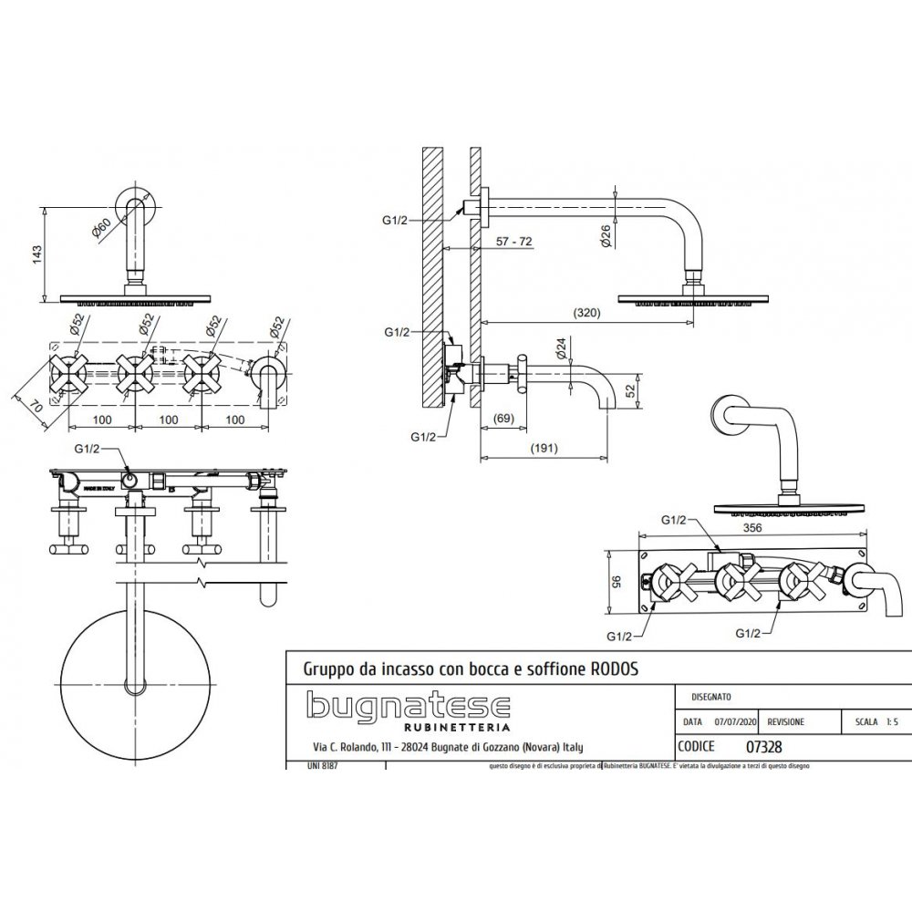 BUGNATESE RODOS EINBAUBADEWANNENGRUPPE MIT CHROMAUSLAUF UND DUSCHKOPF