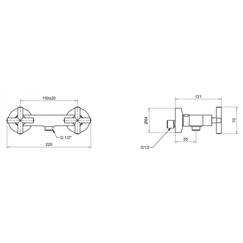 Einhebel Brausebatterie Zweigriff-Außenbrause ohne Duplex Bad Klassiker 7346 Klassisch Extern