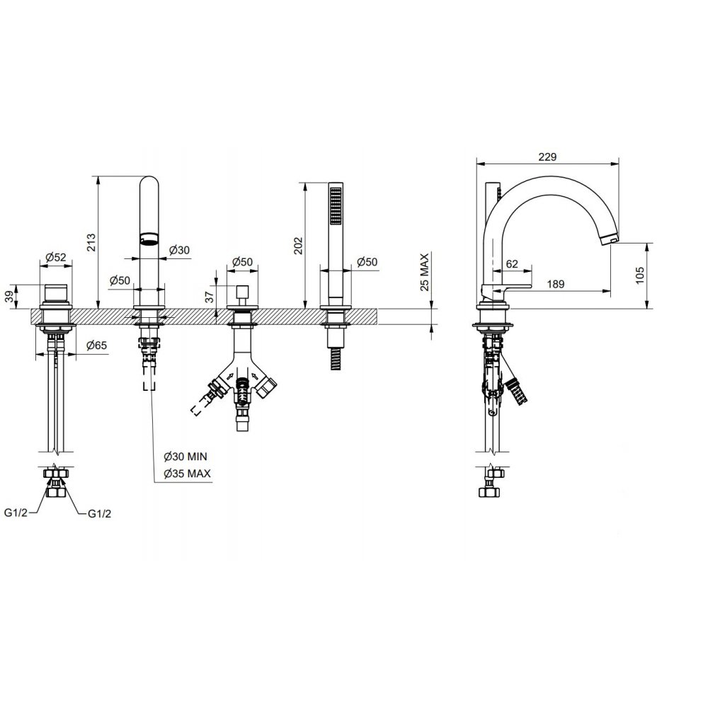 BUGNATESE SIMPLE 4-LOCH-WANNENBATTERIE FÜR DEN WANNENRAND MIT CHROM-UMSTELLER