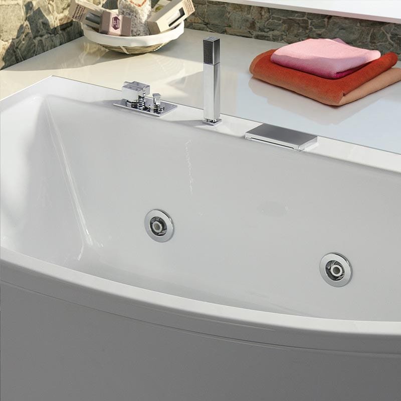 Asymmetrische Acryl-Badewanne mit Rahmen und Frontplatte ohne Hydromassage.