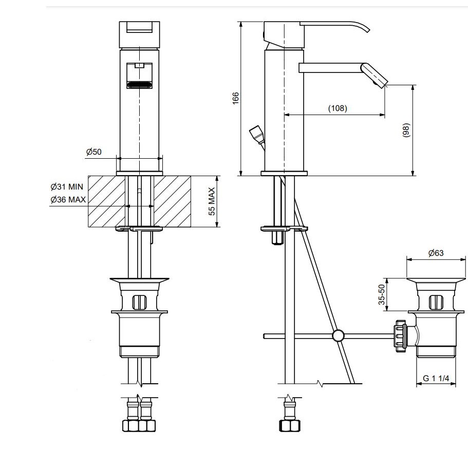 BUGNATESE TESS BIDETBATTERIE MIT ABLAUFGARNITUR VERCHROMT