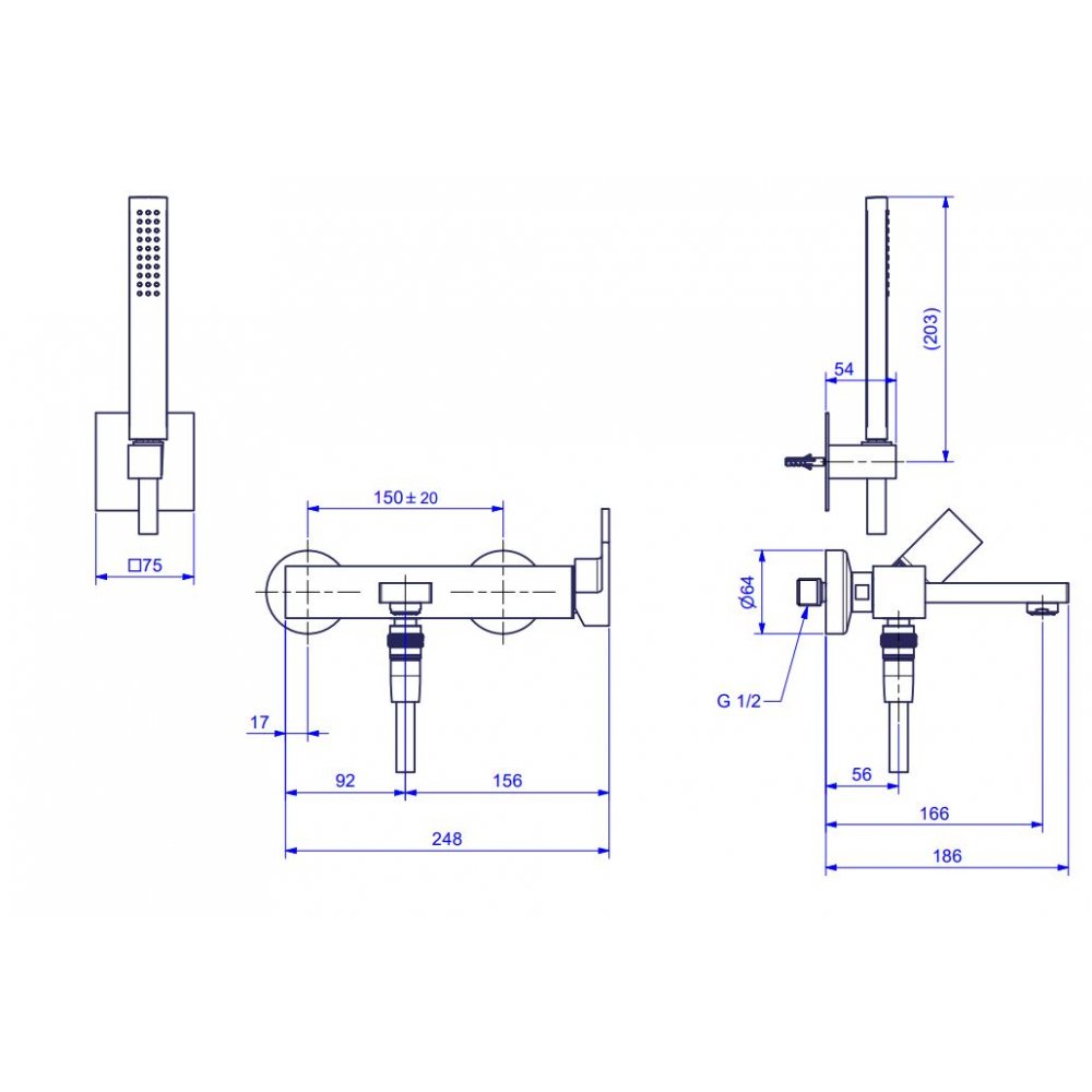 NEWFORM LINFA II WANNENBATTERIE MIT FESTEM HALTER, FLEXIBLEM SCHLAUCH UND HANDBR